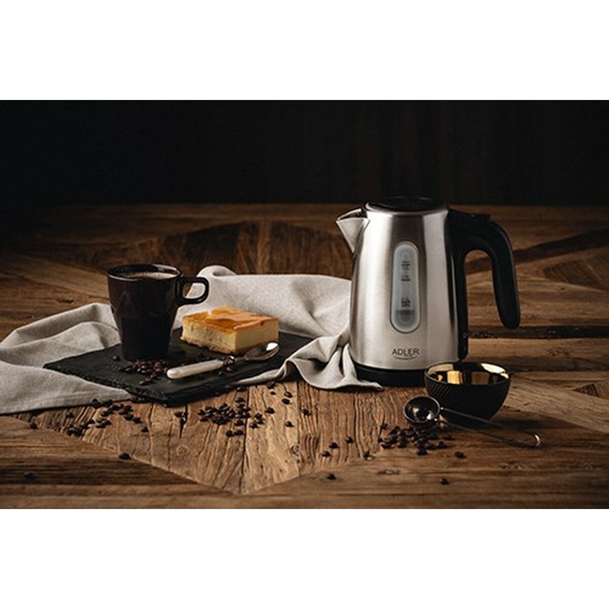 Wasserkocher Adler AD 1273 Schwarz Silberfarben Haselnussbraun Edelstahl 1200 W 1 L